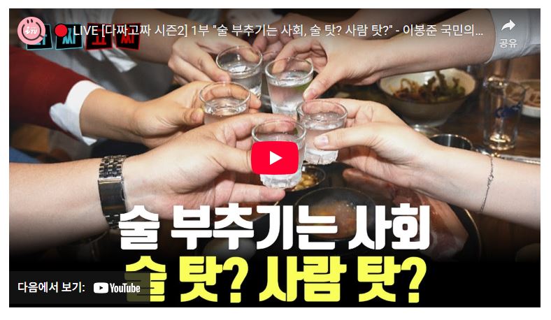 ¡ß ¹Ú¼º¿ë: ¿¹. ¿¬¸»ÀÌ µÇ´Ï±î ¾î±è¾øÀÌ ¼úÀÚ¸®°¡ ¸¹½À´Ï´Ù. ȸ½ÄÀº Àǹ«Ã³·³ ¹Ýº¹µÇ°í °úÀ½À¸·Î À½ÁÖ¿îÀü »ç°í´Â ´Ã°í ÀÖ´Ù°í ÇÏÁÒ. ±Ùµ¥ ÃÖ±Ù¿¡ À¯Æ©ºê¿¡¼ À½ÁÖ ¹æ¼ÛÀÌ ¶Ç ¸¹ÀÌ µîÀåÇÏ¸é¼ Àϰ¢¿¡¼´Â À½ÁÖ°¡ ¹ÌȵǴ °Å ¾Æ´Ï³Ä ¹¹ ÀÌ·± À̾߱⵵ Àִµ¥¿ä. ´Þ¶óÁ®¾ß ÇÑ´Ù°í ¸»Àº ÇÏÁö¸¸ ´Þ¶óÁöÁö ¾Ê´Â Çѱ¹ÀÇ ¼ú ¹®È, ¾î¶»°Ô ¹Ù¶óºÁ¾ß µÉ±î¿ä? 1ºÎ ´ÙÂ¥°íÂ¥´Â Á¶±ÝÀº ¹«°ÌÁö ¾ÊÀº ÁÖÁ¦·Î ÇÏÁö¸¸ Á» ³íÀÇÇØ ºÃÀ¸¸é À̾߱âÇØ ºÃÀ¸¸é ÁÁ°Ú´Ù ½Í¾î¼ ÀÌ ÁÖÁ¦·Î Àâ¾ÆºÃ½À´Ï´Ù. ¸ÕÀú µÎ ºÐÀÇ ÁÖ·®ºÎÅÍ Á» ¿©Â庼±î¿ä? À̺ÀÁØ À§¿øÀå´Ô.