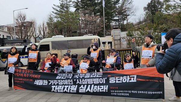 À̾î "Á¤ºÎÀÇ Ã¥ÀÓÀº Àå¾ÖÀεéÀ» ½Ã¼³¿¡ °¡µÎ°í Á×À» ¶§±îÁö »ì°Ô ÇÏ´Â °ÍÀÌ ¾Æ´Ï¶ó Àå¾ÖÀεµ ±¹¹ÎÀ¸·Î Áö¿ª»çȸ¿¡¼ »ì°í »ç¶÷À» ¸¸³ª°í °øºÎÇÏ´Â ´ç¿¬ÇÑ ±Ç¸®¸¦ º¸ÀåÇØ¾ß ÇÑ´Ù"¸é¼ "±¹¹«ÃѸ®´Â ´ç»çÀÚµéÀÇ ¿ä±¸¸¦ ¿Ü¸éÇÏÁö ¸»°í »öµ¿¿ø °ÅÁÖÀεéÀÇ Áö¿ª»çȸ¿¡¼ »ì¾Æ°¥ ¼ö ÀÖµµ·Ï °á´ÜÀ» Ã˱¸ÇÑ´Ù"°í °Á¶Çß´Ù.